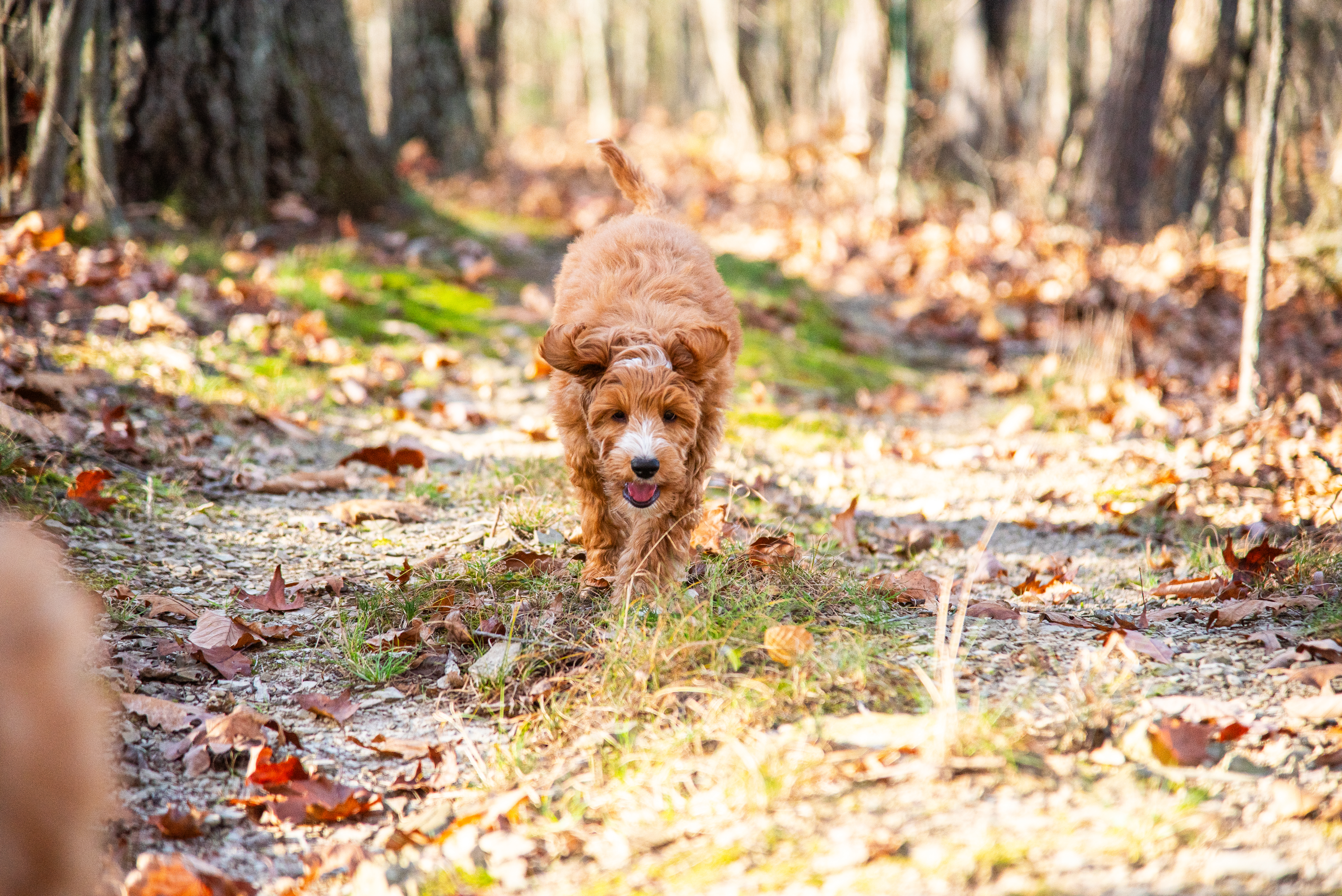 He has been a great little walking buddy and we go on several walks a day through my property’s trails. He sticks right by my side while only slightly veering off to sniff things now and then. I have been using deli meat on our walks and it does keep him focused long enough to check in with me and stay near my left side for the majority of our walks! I am reinforcing him staying beside me heavily and it is definitely starting to show and pay off. This is probably one of his biggest strengths!